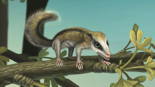 已知最早的树栖型哺乳动物:攀援灵巧柱齿兽复原图(化石网配图)