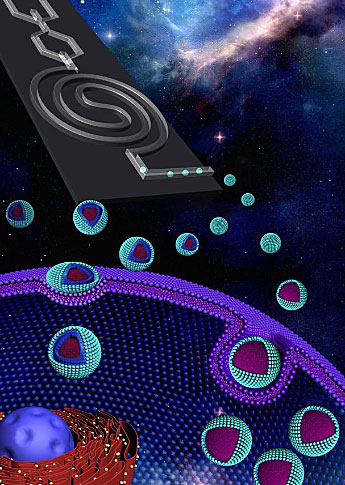 微流控制备的核-壳结构的纳米颗粒具有相同的化学组分、尺寸和表面性质。但是不同的刚度显著影响细胞内吞颗粒。