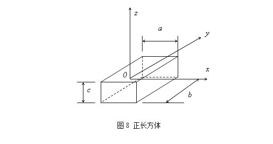 上节提到Jz 为刚体对转轴的转动惯量,它和物体平动的惯性量(即质量)类似。当转动惯量越大时,转动它越困难,或者使它转动角速度增大越困难。具有相同质量的物体,形状不同,其转动惯量大小不同。以图8所示实心长方体为例。这是一个三维尺寸为 aⅹbⅹc 的长方体,为简单起见,令b = 2 a= 4c ; 根据理论力学教科书,有如下公式: