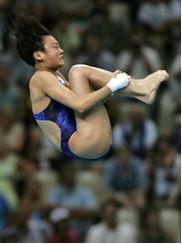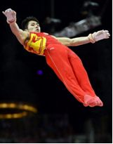 刚体的转动惯量问题,和我们身边的许多活动息息相关,这里以竞技运动为例。体操和跳水运动员在做空翻或翻腾动作时,其身体的姿势(形态)决定了其动作的难度,裁判打分时给不同的难度系数。例如图9a 所示的跳水女运动员所做的团身空翻(或向后翻腾),她的身体曲折成三段,各部分身体重量最靠近于重心。于是,其转动惯量最小,可以使翻腾速度最快。所以,在10米台跳水做翻腾三周半的动作时都多采用团身翻腾。图9b所示的则是曲体空翻(或向后翻腾),她的身体呈曲两段折叠,其转动惯量比团身情况稍大。难度系也较大。最难做的是图9c 所示的体操运动员所做的直体空翻。由于直体的转动惯量最大,空翻最费力;难度系数最大。同时由于姿态优美,打分较高。