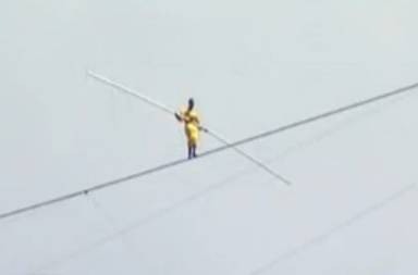 图10 阿迪力新疆喀纳斯高空走钢丝