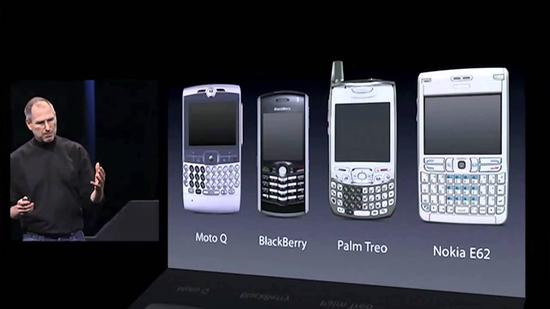在初代 iPhone 刚刚面世的时候,大多数电子设备还并没有养成向苹果致敬的习惯,那时市面上常见的黑莓和摩托罗拉手机还配备着全尺寸键盘,更多的是九宫格按键,哪怕是之后用上了电阻触摸屏,诺基亚也好歹会设计三四个按键放在屏幕下方,这些都和 iPhone 毫无相似之处。