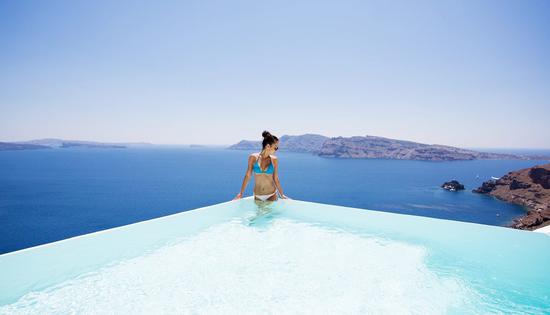这种泳池有何特别呢?它一般只会出现在高端的酒店和度假村中,另外就和图片显示的那样,你并不会看到泳池的边界,如果面积再稍微大一点可能连尽头都看不到,水平面就好像直接延展到地平线一端,并和大海和天空融为一体,确实非常漂亮。