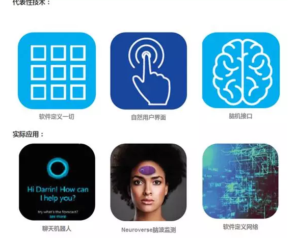 从衣服到建材,数码产品将会更广泛的融入到日常生活中。在此同时,新科技将会改变我们与科技之间交流的方式。语音界面已经被广泛应用在智能手机中,而姿势界面则允许我们无声的与计算机通讯。最终,人脑-电脑界面将会允许我们用思想控制数码设备,使它们成为我们身体的一部分。