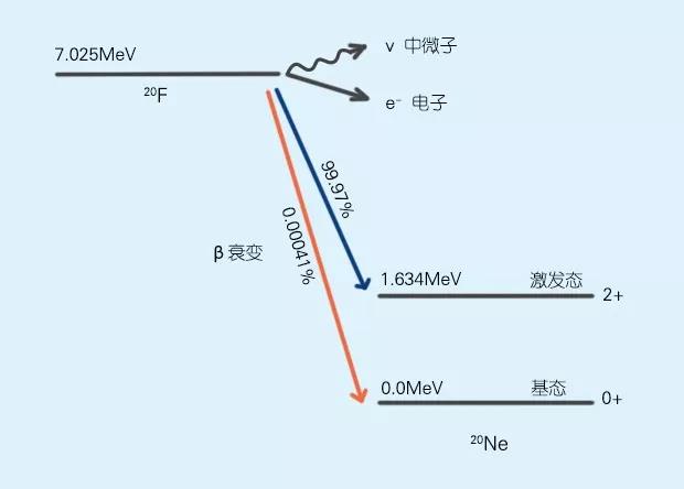 研究人员测量了那些能量超过5.8MeV的电子。这些电子只能通过²⁰F到²⁰Ne⁰⁺的禁戒跃迁产生。当²⁰F衰变成²⁰Ne²⁺时,衰变释放的1.634MeV能量(即衰变能量)会被随后由激发Ne所发射的光子带走。但当²⁰F衰变成²时,全部的衰变能量(7.024MeV)会转给电子和反中微子。由于这种差异,由禁戒跃迁发射的电子比由更常见跃迁发射电子携带更多的能量。通过仔细计算每一种能量的电子数,研究小组确定了²⁰F衰变至²⁰Ne⁰⁺的几率为0.00041%(大约25万分之一)。这听起来很小,但这一比例足以使它成为任何原子核中测量到的第二强的禁戒跃迁。