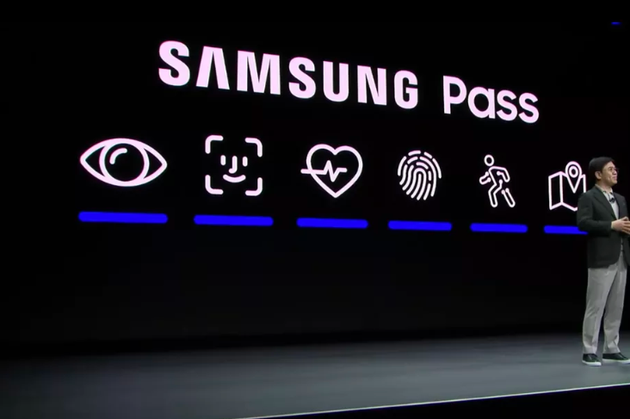 三星新闻发布会开始大约50分钟之后,这个图标出现了,当时该公司消费电子部门负责人正在谈论他们在网络安全领域方面的投入。这位负责人说到:“我们将在身份保护方面进行投资,让用户通过三星通行证(Samsung Pass)访问你最喜欢的网站和移动应用。”这个图标一共展示了15秒的时间。