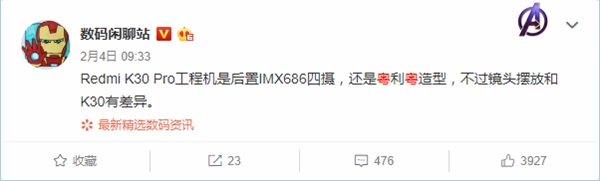 至于发布时间,K30 Pro最快也要3月份亮相了,该机有望通过线上直播形式发布,我们拭目以待。