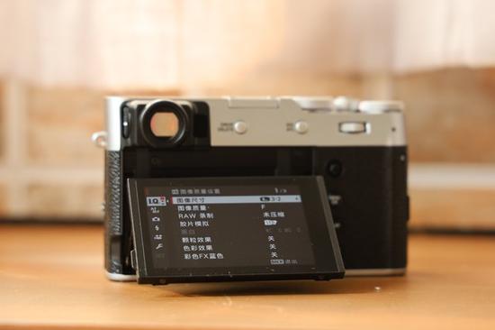 然后,富士X100V还增加了翻折屏幕设计,可以向上翻折超过90度,向下翻折约40度。这样在取景的时候,可以让用户的使用更加顺手。