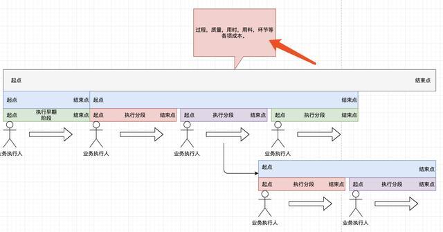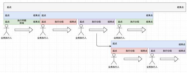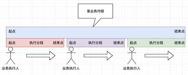 当然还有更复杂的。但是,我们可以从中看到规律,就是业务在执行过程中,不同大小的业务都可以切不同环节。每个环节都是一段,有开始有结束。
