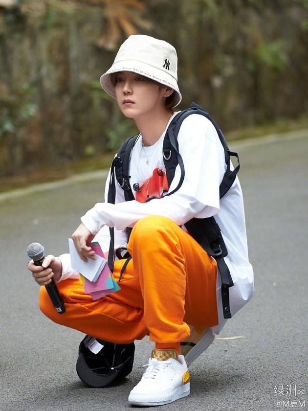 鹿晗 分享了一张帅气近照,发文:“其实我背了个假书包”,并配上三个哈士奇吐舌头的表情。照片中的鹿晗半蹲在地上,头戴渔夫帽,身穿“假书包”背带造型上衣搭配橙色运动裤,造型充满巧思,青春气息满满。