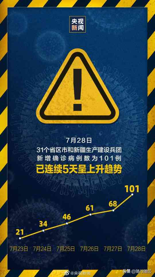 新增病例竟然再度破百,其中新疆的病例增长很快,新增89例。#时隔144天31省新增再超百例# 今天通报新增确诊病例101例,其中本土98例,仍然是新疆,辽宁和北京三地。其中新疆增幅最大,新增89例,辽宁8例,北京再增1例大连相关病例。 值得注意的是无症状感染者也每天再增加,他们都有可能转为确诊。 全国新增病例已连续5天上升,形势不容小视, 曾光表示这肯定意味着疫情出现反弹了,但是是局部反弹。夏天来了,病毒却没有走远,各位还是别大意吧!