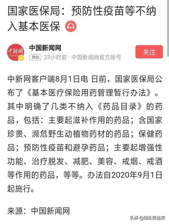 近日,国家医保局发布了新规定:保健药品,预防性疫苗和避孕药品不纳入医保。 以上发布的内容9月1日就开始执行。可以说针对性很明显。新冠疫苗投入使用可能已经进入倒计时了。 一种全民都需要使用的疫苗应该不会太贵。但是不纳入医保还是让许多人心里忐忑。 记得前段时间有研究表明,新冠抗体可能会在存在一段时间后消失,也就是说,这个疫苗不是一次性的,可能会需要隔一段时间打一次。那么这个成本也就不小了。对许多低收入家庭终究还是个负担。 不管怎么说,疫苗的诞生都是大好事。真的希望早日结束新冠回归正常的社会秩序。