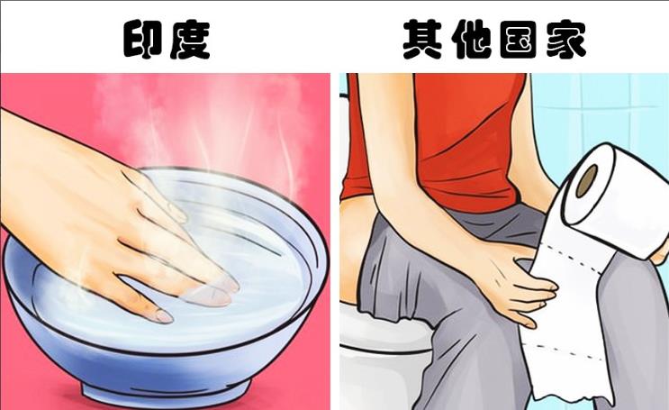 如果在印度旅行,你可能会发现在街头很难找到厕所,又或者你会发现一些基本就是露天的厕所。然而,当你找到一些封闭的厕所的时候,你还会看到更为奇怪的一幕,就是厕所里没有提供厕纸,但却提供了一个可以装水的桶。这是因为印度人习惯于在上完厕所后用左手清洁,而不是用厕纸。正因如此,在生活中,他们往往会用右手进行握手等行为。