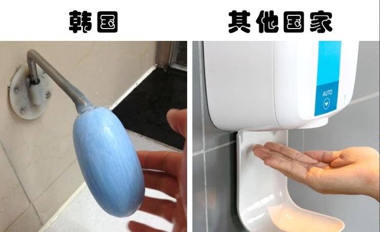 在柬埔寨的家庭厕所里,通常可以在马桶旁见到一种软管喷嘴,很多人可能会为此感到困惑,不知道它的用途。它其实有多种用途,例如用来冲洗屁股,也可以用来冲洗马桶,以及清洁厕所。 3、韩国公厕里的特制香皂