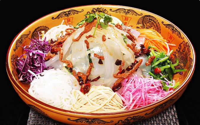 其实,猪肉炖粉条这道菜在东北已经“够硬”了!但这道菜的卖相确实不怎么样。菜上桌以后给人的感觉就是白菜、粉条和猪肉乱七八糟混合在一起,南方人表示实在是不敢恭维,这哪里比得上大排档里的一顿麻辣小龙虾解馋? 东北大拉皮 最后这道“够硬”的东北菜就是东北人招待亲朋时必上的一道菜了——东北大拉皮。从外形上看,有点像南方人吃的凉皮,但其实两者成分截然不同。正宗的东北大拉皮必须得用绿豆淀粉来做,口感比起凉皮来说,要更加地劲道Q弹。