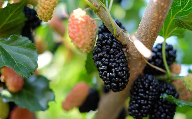 桑葚,被新疆维吾尔族人民称为“阿克玉祖木”,意思彩色的葡萄。分为白、紫两种品种,味甜汁多,是新疆人常食的水果之一。