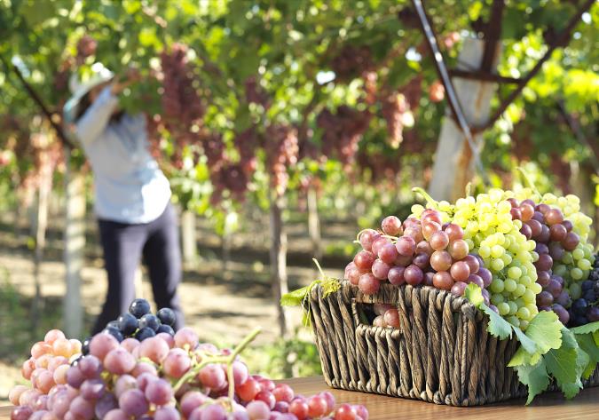 吐鲁番葡萄,世界闻名,因地处低洼,昼夜温差大,日照时间长,再加上当地坎儿井(雪山融水)灌溉,葡萄生长茂盛,含粮量高。吐鲁番葡萄有几十种,常见无核白葡萄,玻璃脆,黑加仑葡萄,美人指,马奶子,木纳葡萄,红提葡萄。6月初早成熟,7月中旬采摘,8、9月集中上市,品种不一样时间会有先后。