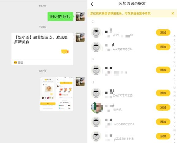 QQ有QQ空间、微信有朋友圈、淘宝有淘友圈、拼多多有拼小圈、抖音有抖音同城圈,美团在近期也做了个圈子。继美团推出“商家群聊”后,美团围绕外卖场景再次搭建了一个社交体系,该功能于7月份开始放量内测,名为“饭小圈”,是一款基于微信好友和通讯录好友,建立社交关系的外卖分享平台。美团的“饭小圈”在玩法上和朋友圈相类似,只不过分享的内容仅限于外卖订单(美食、甜品等),可以看到朋友又推荐了什么美食。目前,该功能还处于内测阶段,只能通过微信好友分享或通讯录分享,邀请开通该功能。
