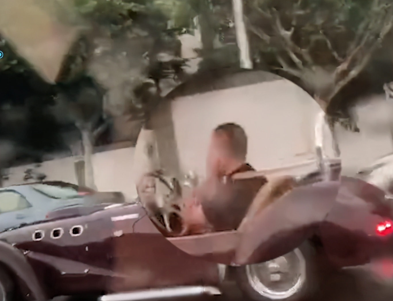 敞篷车非常炫酷,炎热的夏季,开着一辆敞篷车在路上既拉风又凉快。如果是帅气的“老爷车”,还能引起超高的回头率。上海是国内著名的国际化大都市,在这里看到一辆敞篷车并不是什么稀罕事,可是上海街头的这一辆敞篷车却格外引人注目。当天开着车在路上行驶,就看到了旁边一辆敞篷车。这辆车的造型非常特别,车头很长,车尾却很短,而且造型非常复古。看这辆车的样子,价格应该也不便宜。虽然上海的豪车很多,但这样的复古老爷车还是比较少的。一般这样的车都是被车主珍藏在车库里的,在路上能看到一次也很令人兴奋。而这位车主的做法也很令人诧异,外面都已经下起暴雨了,车主竟然没有把车篷关上,冒着大雨在路上行驶。