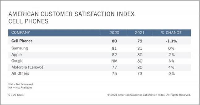 根据一项新的消费者满意度指数的结果,苹果在美国消费者中的客户满意度多年来首次降至三星之下。2020年,三星公司的美国消费者满意度指数保持在81分,与前一年的分数相同。然而,苹果的得分同比下降了到80分,与摩托罗拉和谷歌并列第三。