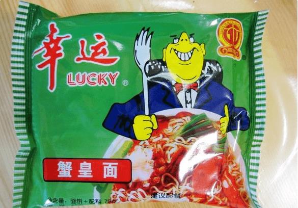 14、幸运蟹皇面 从小到大,我就最喜欢一种,幸运蟹皇面, 在潮汕地区特别流行,在安徽陕西的省份也有,价钱实惠,味道鲜美。广州这边貌似没看到。。小时候就特别不喜欢吃饭,就只想吃方便面,长大后连吃肯德基和麦当劳都觉得恶心!但每次回家,都会买一包幸运蟹皇面,味道肯定比不上什么进口方便面啦,但可以慢慢回味童年的感觉。