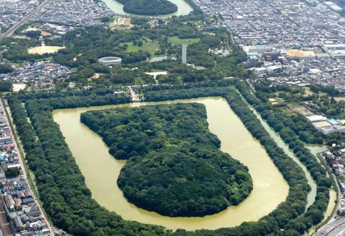 “仁德天皇陵古坟”位于日本大阪府堺市大仙町,它的正式名称为“仁德天皇百舌鸟耳原中陵”。仁德天皇是日本第16代天皇,于313年1月3日至399年1月16日在位,他就是《宋书·倭国传》所记载的“倭国大王赞”。 这座古坟的规模非常大,它南北长480余米,后部圆形部分直径250米,前部长方形部分宽307米,陵高34米左右,外部环绕三圈水道,包含上水道,墓地东西660米,南北850米。如果沿着墓地外围道路走一圈,距离近3公里。规模如此巨大的坟墓,使得“仁德天皇陵古坟”成为日本最大的陵寝,也是目前世界上最大的前方后圆坟。 顾名思义,古坟就是古代的坟墓。从公元3世纪中叶到7世纪,日本被称为古坟时代,因当时统治者多营建古坟而得名,“仁德天皇陵古坟”也是在这个时期被修建,它与中国的秦始皇陵、埃及的胡夫金字塔并称“世界三大陵墓”。 从空中来看,“仁德天皇陵古坟”很像一个巨大的钥匙孔。仁德天皇在位期间,恰逢日本统一的鼎盛时期,这使得他能修建规模巨大的墓地。据日本历史专家推测,以仁德天皇在位期间日本的技术水平,修建这样的墓地,需要动员680万人次,每天至少2000人,历时16年才能建成。 不过,有考古学者和历史学家认为,“仁德天皇陵古坟”的墓主人很可能不是仁德天皇,其墓主身份还有待考证。在日本皇室历史里,天皇的墓地一直是不可亵渎的禁区,即便是盗墓者也不敢轻易来盗掘。也就是说,“仁德天皇陵古坟”历经一千六百多年依旧保存完好。目前游客来这里参观,必须保持安静,以示对天皇的尊敬。 事实上,历史上的天皇墓地一直被封闭,还有守陵人。然而,日本民间对于弄清“仁德天皇陵古坟”墓主人真正身份的呼吁一直没有停止。日本一些民众认为,发掘“仁德天皇陵古坟”是弄清墓主人身份最有效方法,应该尽快付诸实施。 但是,日本皇室强烈反对发掘“仁德天皇陵古坟”,理由是认为这种行为是对日本天皇的最大不敬。近些年来,日本考古界发掘了“仁德天皇陵古坟”附近的一些陪葬墓,出土了一些陪葬品,比如鎏金铜甲胄、刀、玻璃器、铜镜等。据此,日本考古界认为“仁德天皇陵古坟”的陪葬品一定无比惊人。