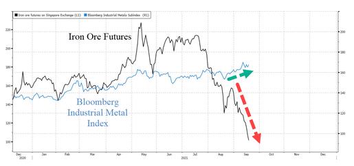 内外盘的铁矿(629, -47.00, -6.95%)石期货均五日连跌并跌逾20%,自5月触顶以来腰斩,成为与铝、天然气和煤炭背道而驰、表现最差的主要大宗商品之一。瑞银的最新研报预测,随着市场转为供给过剩,铁矿石不仅将继续跌价,跌速还“会比预期要快”。自5月创下历史高点以来,铁矿石价格开启暴跌模式,过去一周下跌超20%,创2008年金融危机以来最差表现。9月17日周五美股盘前十几分钟时,10月交割的新加坡铁矿石期货主力合约跌破100美元/吨,日内跌超7%,创2020年7月以来的14个月最低水平。铁矿石期货本周跌逾22%,自今年5月触顶以来已经跌价了逾一半,金融博客Zerohedge称这是该期货有史以来最差的单周表现。 与铝飙升至13年高点、天然气价格飙升、煤炭期货屡创新高相比,铁矿石正成为表现最差的主要大宗商品之一,抛售加剧也令其价格波动率升至五年来最高。
