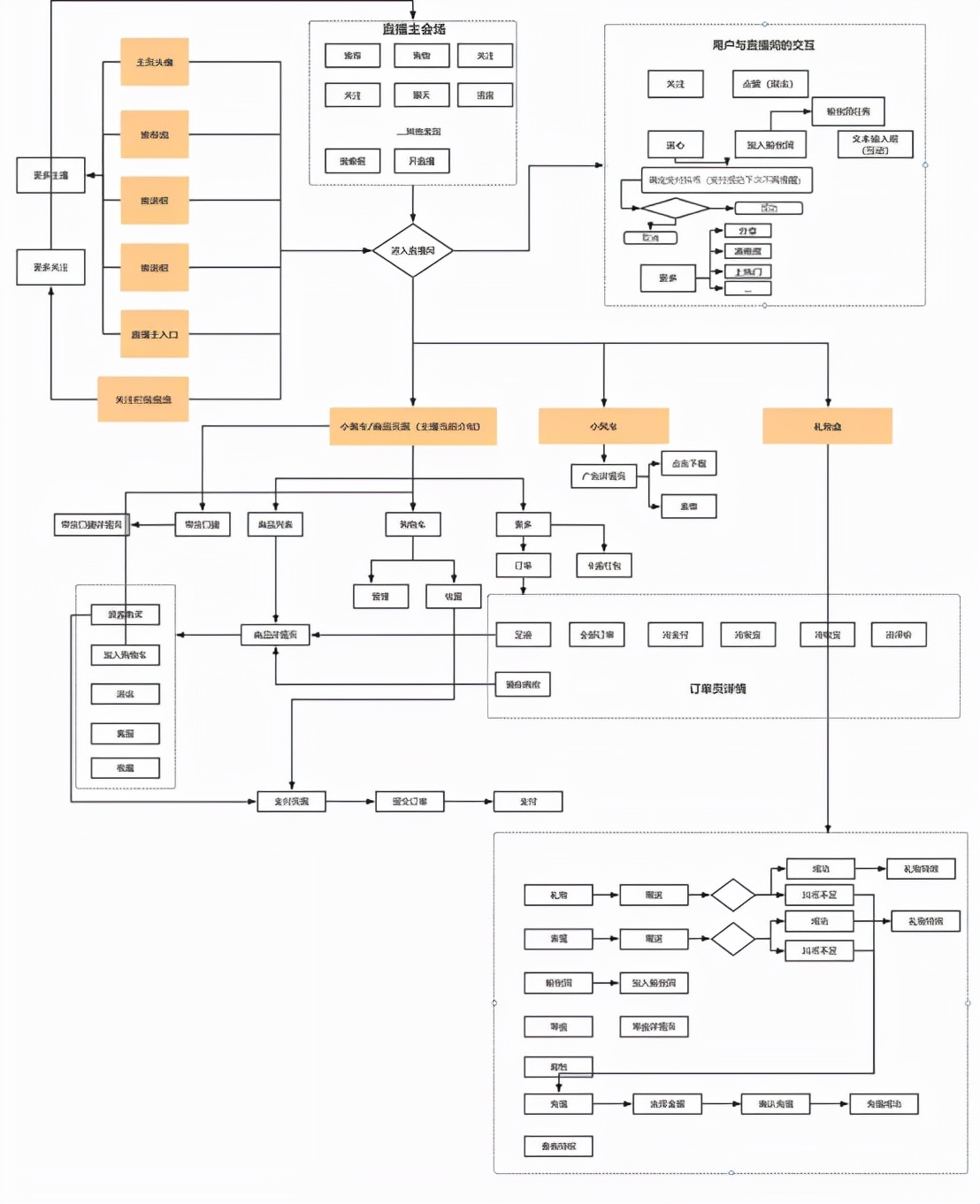 三、UJM模型:搭建用户流转地图 什么是UJM(User Journey Map)用户流转地图呢? 本质上来说就是梳理用户在产品中的完整使用流程,拆解用户所处的每一个阶段、了解用户阶段的行为、明确每个阶段的用户产品目标、发现产品与用户的接触点、最后从接触点中找到产品的痛点和机会点。 同样的,以抖音直播为例,构建一个简单的用户流转地图,解答流量从哪里来、用户在直播间的动作和用户后续的高价值行为这三个问题,并标注出用户在各个流程环节的转化率。