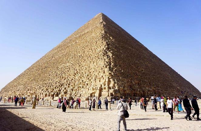 金字塔奇迹,说起人类建筑史上的奇迹,你脱口而出的一定是秦始皇的万里长城,第二个八成就是古埃及的金字塔了。为了抵御北方游牧民族的袭扰,公元前200年秦始皇嬴政修筑起万里长城,实际上长城在秦之前的几百年就陆陆续续修建,只是在秦之后将其连接起来并加以延伸,而我们现在经常参观的长城则是在明朝修复和修建的。金字塔不同,作为古埃及奴隶主的坟墓,它们的修建时间大多需要追溯到公元前3000年,其中最具代表性的吉萨金字塔群是在公元前2500~2600年之间建造的,其中就包括了著名的埃及法老王胡夫金字塔。在这里需要先纠正一处错误,就是许多人常常把胡夫金字塔与哈夫金字塔搞错,误以为中间那座“最高大”的是胡夫金字塔,其实这只是由视角造成的错觉,画面中最远处的胡夫金字塔才是最高大的。胡夫金字塔建成时高达146.59米,底边平均长约230米,使用了总共约250万块巨大的石灰石和花岗岩,这些巨石最大的重达10吨,最小的也有约1.3吨重。古埃及的工匠和奴隶们花了约23年时间将这些沉重的石块严丝合缝地码了210层,平均每天要加工搬运和码放342块石头。这无论从哪个方面来看都堪称奇迹。