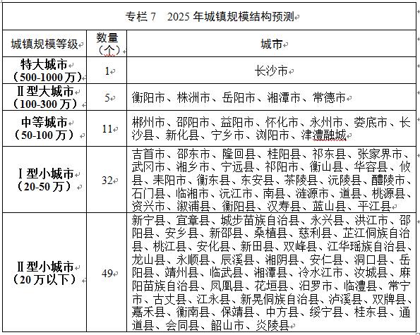 从常住人口来看,张家界共有152万,吉首市40万,而根据规划预测,到2025年张家界市区只有35万人,吉首市45万人,因此被划入I型小城市范围,符合发展实际。此外,还将有邵东市、隆回县、桂阳县等32个县级城市进入I型小城市;新宁县、宜章县等49个县级城市进入II型小城市(20万人以下)。