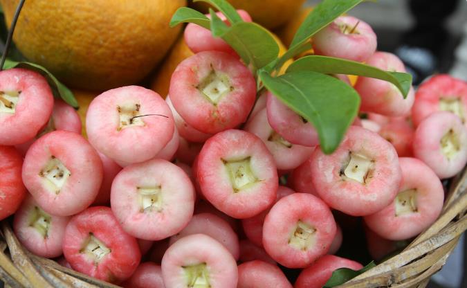 舅舅家种了一棵莲雾,一到夏天掉得满地都是,每次都是一筐筐的倒掉,第一次见到这水果时挺新奇的,一个个像铃铛一样的粉红色小果看着让人喜欢,我摘了一个尝尝,口感脆脆的,但是没什么味道。莲雾这水果以前并不常见,偶尔在水果店看到有,和自家种的品种不一样,进口莲雾更大更红,而且还卖得很贵,这水果味道较为平淡,没什么特别,所以也比较少人买。 雪莲果
