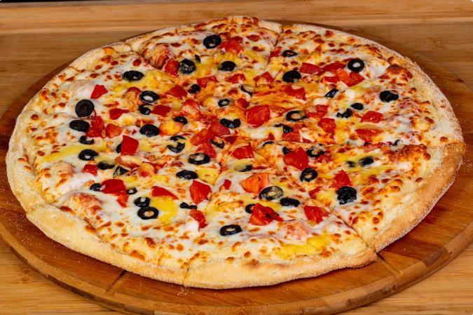 chicken pizza(烤鸡肉披萨) 这其实是一道意大利的菜品,现在也是美国人最爱的披萨品种之一,很多快餐店里的标准配置。