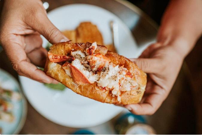Loberster Roll(龙虾三明治) 缅因州盛产龙虾,有一些用龙虾做的名菜,如芝士焗龙虾就是美国人特别的喜欢的一种,他们还喜欢把龙虾肉剔出来加到面包中,配以生菜酱料一起食用。