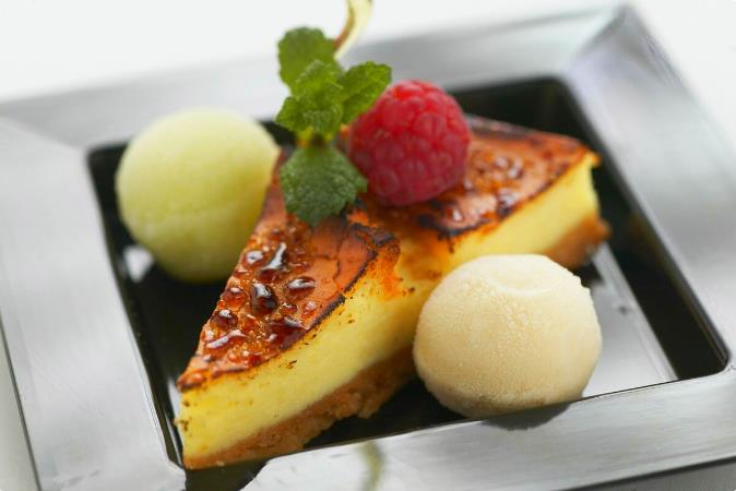 New York Cheesecake(纽约美式芝士蛋糕) 这道小甜点主要用奶油奶酪为原料,搭配比较香脆的小饼、酸奶油和鸡蛋制成,奶香浓郁,入口即化。