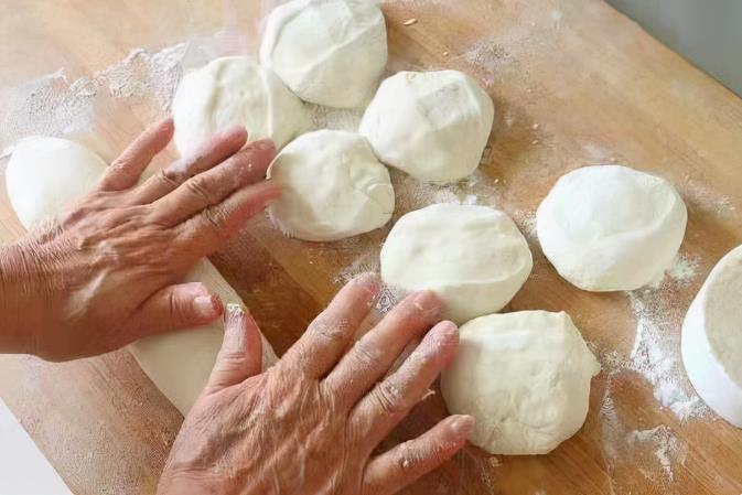 正确做法:首先把面粉放入盆中,加入酵母水搅拌均匀,然后下手把面团揉的盆光、面光、手光,再用东西遮盖自然发酵原本2倍大,这是第一次醒发,发酵好以后再揉再发酵,这是第二次醒发,然后再揉一次,分面团整形,冷水上锅蒸,面团在蒸锅中随温度升高而发酵,就是第三次醒发。 那么3次醒发有什么好处呢?面食就是要多揉多踹,这样不停打乱面团筋性,不断醒发,蒸出来的馒头、包子更加暄软蓬松有嚼劲,出锅后不回缩、不塌陷。