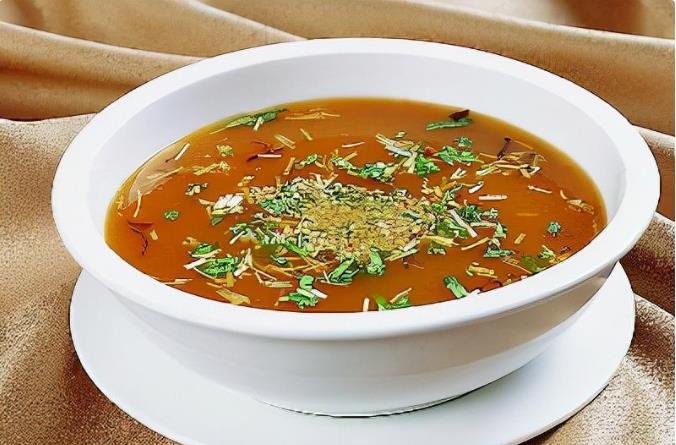 驼蹄羹 驼蹄羹是地道的陕西官府菜,其味道鲜美。陕西人宴请嘉宾,常常以此作为第一道菜,受到普遍好评。主料是驼蹄。调料突出姜、葱、胡椒。佐以香菇等清爽可口的菜蔬,汁浓如乳、入口清香、回味无尽。 驼蹄羹作为名肴,出现在杜甫的《自京赴奉先县咏怀五百字》一诗中。安禄山的反书到长安,乱在眉睫,唐明皇却还在华清宫拥着杨贵妃作乐。此时杜甫经过骊山,为唐明皇高枕浑不知忧而嗟叹。“劝客驼蹄羹,霜橙压香橘。朱门酒肉臭,路有冻死骨。”