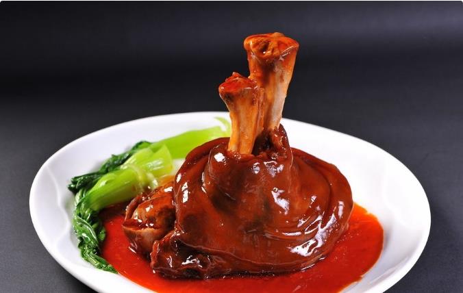 带把肘子 带把肘子是陕西大荔县的传统名菜,为明朝弘治年间同州(今大荔县)城里的厨师李玉山所创制。相传同州州官为人刻薄,官声甚差,却很擅长拍马屁。当抚台郑时来巡视时,为了讨好他,州官特召名厨李玉山到府里烹菜。李玉山为人正直,故意制作了一盘带骨的肘子,以讽刺州官搜刮民财,吃肉不吐骨头。抚台郑时察知其意,便重办了州官,为民除害。后来郑时问这道菜叫什么名字,李玉山便说:“因脚爪似把柄,就叫带把肘子吧!”