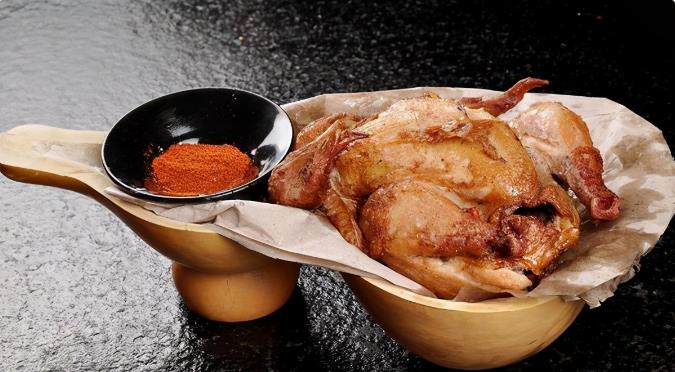 葫芦鸡 葫芦鸡被称为“长安第一味”,因其形似葫芦而得名。此菜源于唐代,据说担任过兵、礼两部尚书的韦涉出身官僚世家,对饮食极为讲究。有一天,他为了想吃到味美酥嫩的全鸡,特命家厨用先煮后炸的方法烹制。韦涉尝后,嫌肉质太老,竟令家丁将厨师重打五十大板致死。第二位厨师便采用先煮、后蒸、再炸的方法,结果酥嫩要求都达到了,然而鸡肉脱骨,皮肉松脆而不成形,韦涉认为是厨师偷吃了鸡肉,又将这位厨师赶走。第三位厨师吸取了前两位前辈的悲惨教训,把全鸡用麻绳捆起来,先蒸至断生,再用滚油炸酥,结果成品不但香醇酥嫩,回味悠长,而且形似葫芦,煞是好看。韦涉非常满意,将它命名为“葫芦鸡”。后经历代西安名厨不断改良,技法日臻完善,成为最具代表性的西安名菜。