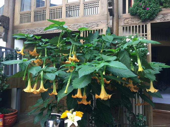 曼陀罗在古代就特别的有名,有关曼陀罗的传说也有很多。曼陀罗真是一种带有毒性的植物,有名的麻药麻沸散,就是以曼陀罗为原料,而制作成的麻醉剂。曼陀罗的花朵非常漂亮,而且又香气,但是这个香气闻了之后也会令人头晕,它的种子毒性更大,所以很多人说它是最危险,最迷人的花了。但是,曼陀罗它的植株也比较优美,花开一朵一朵垂下来也非常的漂亮,有些朋友还是喜欢养在家里一些的,如果是在家里养的话,一定要给大家普及这些知识,尽量去少碰它,更不要去吃,尤其是它的果实,放在庭院中观赏也是一种不错的植物呢。