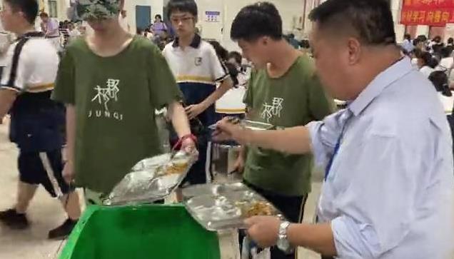 日前,永州郡祁学校的一则视频引发网友热议。视频显示,在该校学校食堂,一名中年男子正站在垃圾桶旁,只要见到有学生端着大量剩菜准备倒入垃圾桶,男子便会用手中的筷子将其盆中的剩菜吃完,不时还鼓励饭盆里有剩菜的学生一起吃。网传视频显示这名男子为该校校长。