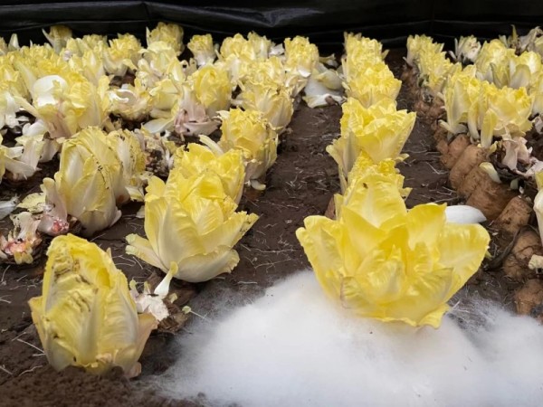 而且,它的种植很麻烦,首先要养根,按照正常蔬菜的模式种植,等到当年冬天叶片枯萎以后,根茎保留下来。然后等开春之后,不见光种植,让它的球芽叶变成乳黄色的“白菜心”! 03芽球菊苣前景 芽球菊苣价格比较高,而且产量也不低,但是它的需求量可能并不是特别高。因为它的种植非常麻烦,价格太低就种植不出来了。 价格高,导致受众小;产量高却又导致更可能卖不完。因此,种植芽球菊苣,一不小心就可能砸在手里卖不出去。 而且芽球菊苣种植投入也比较高,需要建造大棚,精心管理,特别是不能见光,需要遮光等等。而且一般要两年才能采收第一茬,种植周期比较长,不建议新手种植。 芽球菊苣常被误认为是白菜,但是它和白菜的生长环境不同。白菜可以正常种植,让它经过风吹雨打,日晒雨淋。但芽球菊苣却要生长在黑暗处,不能见光,否则就不值钱了,比白菜卖价还低。 见了光的绿色芽球菊苣,只能当青饲料,甚至是烂菜叶一样,没有人要或者几分钱一斤,基本没有经济价值可言。但未见光的乳黄色的芽球菊苣,却能够卖到35元一斤,而且一般要在高档酒店,西餐厅等地方才能吃到。