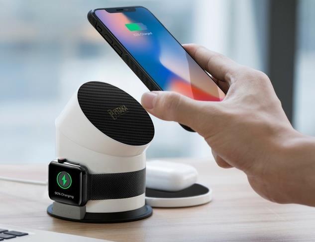 说实话,刚拿到这款掌机的时候,确实很兴奋,毕竟一款游戏掌机包含了FC、SFC、世嘉MD、GBA、PS,甚至连PC DOS时代的经典游戏《仙剑奇侠传》、《天使帝国》、《三国志3》等游戏都可以玩,实在是补足了童年所有的遗憾。 玩过一段时间再加上日常忙碌的工作,也就逐渐失去了对于开源掌上游戏机兴趣,随之也就被束之高阁。现在周末偶尔打开玩一玩,轻松一下,也还不错。 3、桌面无线充电器 现在越来越多是手机支持无线充电,甚至连iPhone 12系列也加入了Magsafe无线充电功能。于是我买了一套Pitaka的无线充电套装,不仅支持iPhone 12系列的Magsafe无线充电,也可以为安卓手机、AirPods Pro以及Apple Watch充电,可以说是一个无线充电器全搞定。