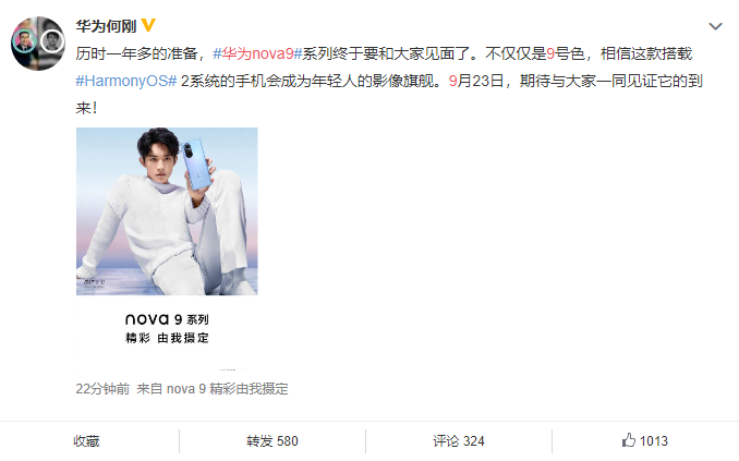 官宣之后,@华为何刚 表示:“历时一年多的准备,华为nova9#系列终于要和大家见面了。不仅仅是9号色,相信这款搭载HarmonyOS 2系统的手机会成为年轻人的影像旗舰。9月23日,期待与大家一同见证它的到来!” 从其话语中,可以确认三个信息,一是nova9系列将有新配色9号色,二是该系列手机主打影像,官方既然称之为“年轻人的影像旗舰”,意味着可能会配备同类型手机非常少见的配置……比如RYYB滤光阵列?三是预置HarmonyOS 2,有报道指出,nova9系列将预置最新的HarmonyOS 2.1,优化系统功能以及对高通芯片平台的支持,包括华为P50也将预置该系统。 “高通?难道……” 私以为,华为nova9系列搭载的可能不是麒麟芯片,麒麟9000系列主要供应关键产品,加上今年由于制裁等原因,没有发布麒麟820、麒麟985等5G芯片的迭代产品。所以该系列手机大概率搭载的高通4G芯片。有意思的是,日前曝光了SM7325的4G版本,而这颗芯片恰恰是骁龙778G。或许华为nova9系列搭载的是高通骁龙778G的4G版本,虽说是一颗中端芯片,但如果优化到位,也完全可以满足正常使用。另外,工信部还公布了nova9系列的设备照,整机设计与荣耀50系列相似,背面为双圆环镜头设计,机身下方印有“nova”logo。手机正面采用双打孔设计,依然为曲面屏,同时机身至少看起来很薄,预计轻薄的机身也将会是该系列手机的亮点之一。过华为表示nova9系列将于9月23日上市,而非“发布”, 难道要直接上架?