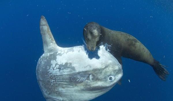 边晒太阳边按摩清洁,属实是会享受啊!当然除了选择阳光疗法,翻车鱼还会把除去寄生虫的任务托付给深海里的鱼类,就像现在市场上很火的鱼疗一样,人类利用小鱼吃掉脚上的死皮,不过翻车鱼是利用小鱼来吃掉自己身上的寄生虫,不知道足浴店的经营策略是不是从翻车鱼身上得来的灵感。 奇葩的外形不仅让翻车鱼看起来很好笑,同时也对它的生活造成了严重的影响,翻车鱼身体太圆没有尾鳍,它只能依靠两片背鳍的摆动来控制方向,然后在海洋中缓慢前进,一般的鱼类都可以通过鱼鳔的放气和吸气来实现下沉和上升,但是翻车鱼根本没有鱼鳔,它只能依靠其笨重的身体进行手动升降,这种姿势注定它的游泳速度不会太快,所以翻车鱼很容易遭到天敌的攻击。 当它们遇到鲨鱼、虎鲸、海狮等天敌时,压根没有逃跑的机会,翻车鱼似乎也非常明白自己的处境,面对天敌的攻击它们的选择是留在原地任由对方撕咬,所以我们在视频里有时候会看见,一只被咬的还剩一半的翻车鱼漂浮在海里,翻车鱼在面对猎食者时,只抱着一个希望那就是祈求对方赶紧吃饱,通常情况下,翻车鱼面对捕食者有两个下场,要么被啃食致死,要么身体被吃了一部分后,捕食者吃饱离开,翻车鱼继续生活。 可能有朋友奇怪了,翻车鱼就不会动一动吗?即使是速度再慢,面对天敌的攻击任何生物都会激发求生本能,要么跑要么干,不跑不干是个什么意思,难道翻车鱼和平头哥一样已经看淡了生死?其实不然,别看翻车鱼体型庞大,但它的脑容量非常小,1条翻车鱼的大脑只有4克,就和花生米差不多大,再加上它们皮糙肉厚,厚厚的鱼皮没有神经,被啃食的再厉害也感觉不到疼痛。所以翻车鱼哪里是不逃跑,它是压根不知道自己正在被吃,说不定还以为这些家伙在和自己玩呢 一条笨到被敌人吃掉半边身体,都不知道逃跑的鱼是如何在自然界生存下去的?翻车鱼之所以没有被灭绝还要归功于它的独特体质,和大多数鱼类是冷血动物不同,翻车鱼可以保持体温的恒定,很少有热量散失。所以它可以潜伏到深海里去吃同样游动速度很慢的水母,在面对深海时它扁平的身躯也可以很好的抵御这里的压强。同时翻车鱼在海洋中也是有它的生存价值的,它能分泌出一种特殊物质帮助其它鱼类疗伤,所以翻车鱼算是海洋里的“医生”。同时翻车鱼身上的寄生虫也给其它的海洋生物提供了食物来源,的确是海里不可或缺的一部分。 虽然说自然界蠢笨的生物不在少数,但像翻车鱼这样蠢的生物实属少见,它们到底有多蠢?从各种奇葩的死亡事件就能看出一二,它们有浮到海面上晒太阳把自己晒死的,有被海狮当成飞盘扔到空中砸在海面上砸死的,更过分的是它们还会自己钻到渔网里求被杀,本来因为翻车鱼不吉祥的名字和它肥厚的外皮,渔民根本不爱搭理它们,但是这个家伙还非要往渔网里钻,真的是自己做得一手好死。