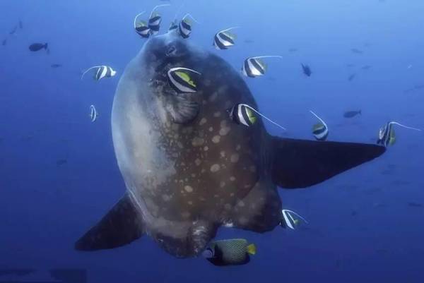 这种鱼可以说是世界上最蠢的鱼,它究竟蠢到什么程度?被敌人咬掉一半身体却还不知道逃跑,它单纯的以为这是敌人在跟它开玩笑,但同时它又是生命力最顽强的鱼类之一,即使被咬掉了一半身体仍然能好好活下去,你见过这样神奇的动物吗? 走进动物世界,探寻自然奥秘。大家好,这里是自然馆长,欢迎收看本期视频,今天我们就来看看长着平板身体,走到哪都会翻车的翻车鱼。 翻车鱼也叫翻车鲀,是一种大洋性鱼类,在全世界的热带和温热带水域都有分布。如果海洋生物有奇葩榜,那翻车鱼绝对可以排进前五,它们的长相非常奇特,身体又圆又扁像个大碟子,两侧圆鼓鼓的,头上长着两只小小的透明眼睛和一张小而厚的嘴巴,翻车鱼的喙状牙板无法完全闭合,导致它只能一直张着o型嘴,看起来非常有意思,会给人一种在卖萌的感觉。 成熟期的翻车鱼与小时候会有明显的不同,刚刚被孵化出来的翻车鱼仅有2毫米左右,这个时候在它们身上可以看见长长的尾鳍和宽大的胸鳍,等再长大一些,它们的尾鳍和胸鳍会开始逐渐变小,身上能看见棘刺,看起来很像河豚,再过一段时间,它们的身体会开始变厚,身上的尾鳍和胸鳍开始消失,然后就变成我们常看到的模样了。说实话长大的它一点都没有小时候可爱,这也算是变相的长残了不是吗。 长大后的翻车鱼,是个佛系玩家,首先表现在晒太阳方面,它们经常侧翻着身子,把庞大的身躯平摊在海面上,远远看去还以为这是只翻白肚的死鱼,这幅悠闲的模样像极了村口扎堆的老大爷,翻车鱼爱浮到海面上其实还有一个原因,由于翻车鱼没有鳞片,很容易被寄生虫覆盖,所以它们的体表往往都长满了各式各样的寄生虫,最多可达50种以上,甚至这些寄生虫身体内还有其它寄生物,而当翻车鱼浮出海面晒太阳时,它的老朋友海鸟就会替它吃掉这些寄生虫。