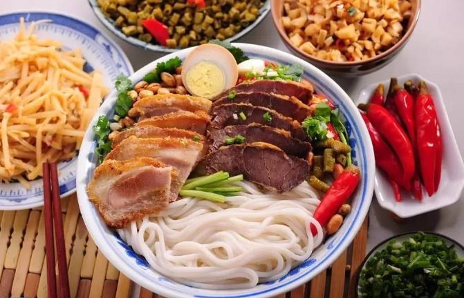 湖南米粉是当地人一日三餐都爱的美味,粉的形状有扁圆之分,也有粗细之分,另外从口味上分三种主流,津市米粉,长沙米粉和湘西米粉。汤粉口味清香,骨汤熬制,配上牛肉、红烧肉、牛杂等,吃起来非常美味。而干拌粉又是另一种风味,加入火炼猪油,秘制酱料后吃起来非常过瘾。 三、云南过桥米线