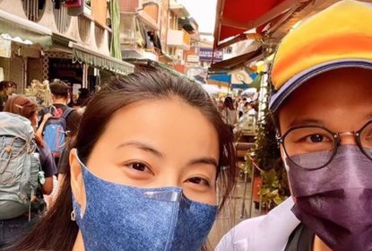 霍启刚在社交平台晒出一组和郭晶晶约会的照片,配文“长洲一日游...