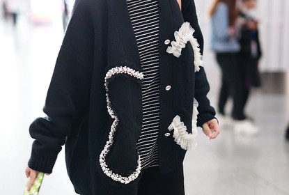 吴昕现身机场。她戴着线帽御寒,身穿黑色带有蕾丝和珍珠装饰的长...