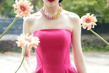 唐嫣出席某品牌活动造型图释出,她身穿一袭粉色抹胸连衣裙,凸显...