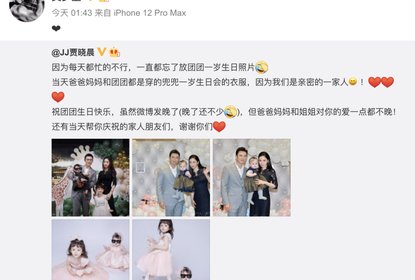 樊少皇在微博上转发了妻子贾晓晨分享的女儿一周岁生日照,妻子贾...